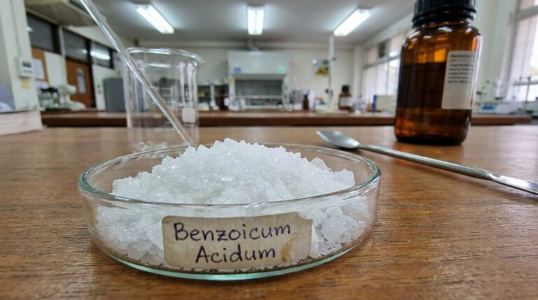 Benzoic acidum: Materia médica de Lathoud Benzoic acidum o ácido benzoico, existe naturalmente en la mirra, en el Bálsamo del Perú, en muchos vegetales (clavo